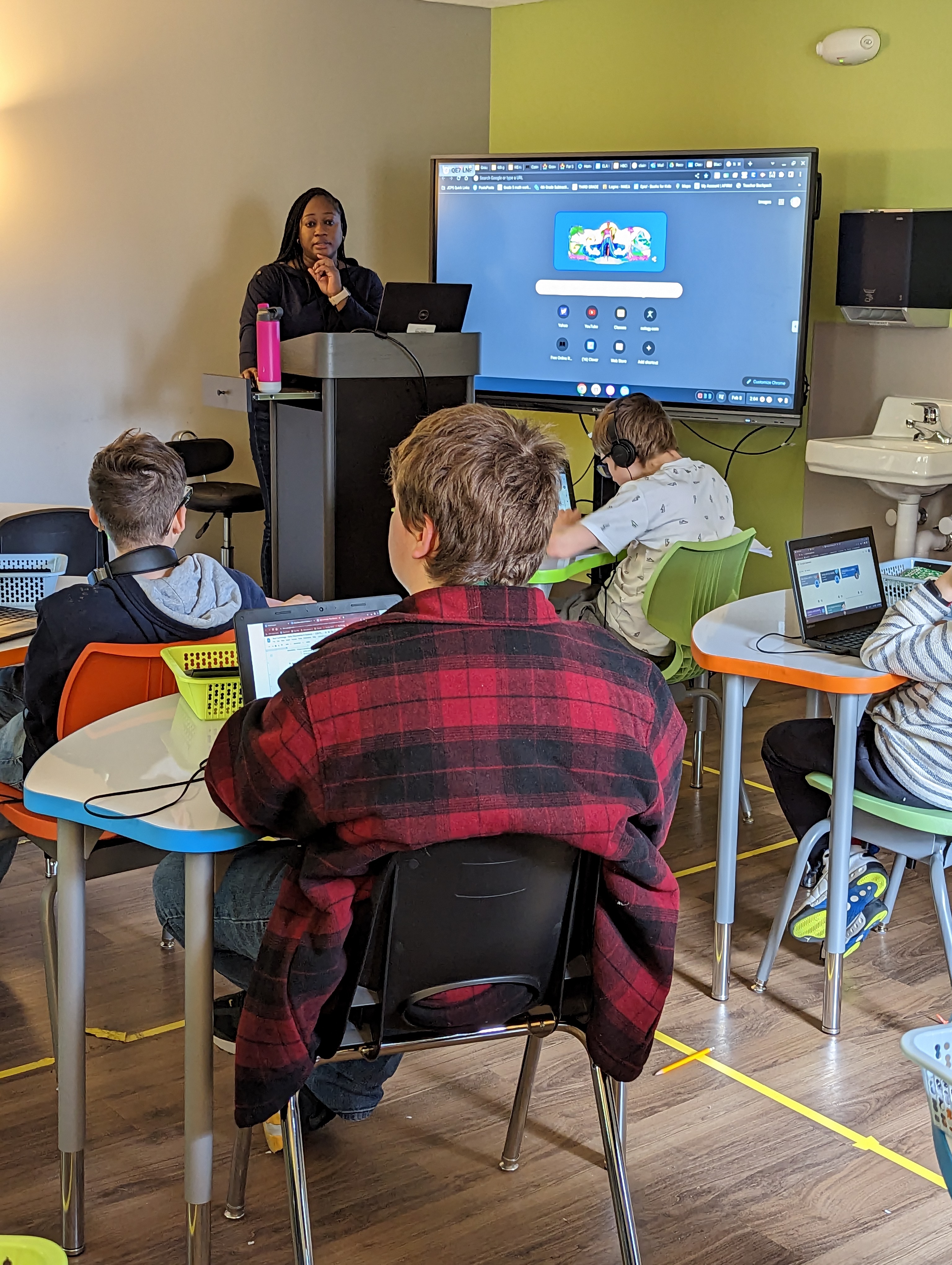 If a student is struggling either academically or socially, they can take a time-out at their desk or go to a designated break area located in the classroom for more privacy. They also have the option of taking a 5-minute break outside of the classroom, or they can go to the refocus room – a safe place for calming down. “There are a lot of emotions in a residential center, and it’s important to have a room like this,” says one resident.